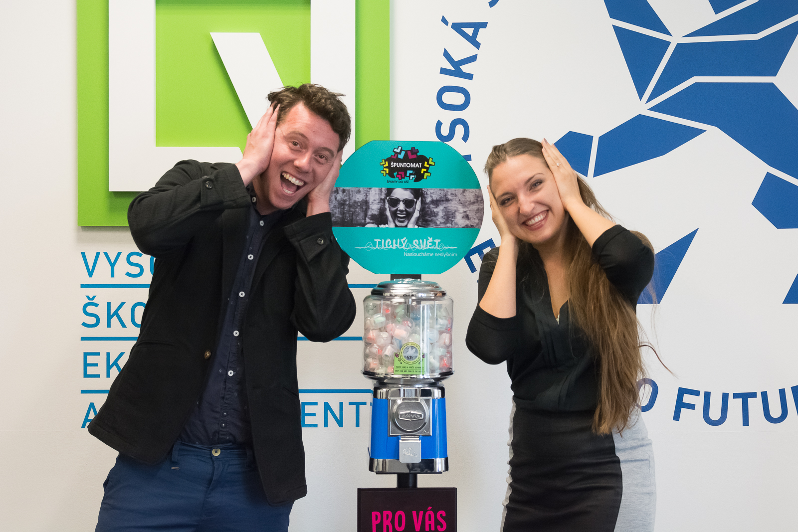 Na Vysoké škole ekonomie a managementu v Radlicích jsme ve spolupráci se Špuntomatem zprovoznili první automat na "ticho". Studenti této školy mají možnost ochutnat skvělou kávu z naší Tiché kavárny a k tomu si mohou zakoupit klid na učení.